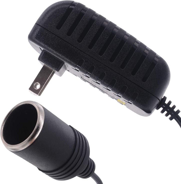 No se recomienda para infladores de neumáticos y cama, mantas con calefacción, aspiradoras y dispositivos de alta potencia. Adaptador de enchufe de alimentación CA-CC que transforma 110-240 V CA de enchufe de pared a 12 V CC, funciona perfectamente con cualquier producto electrónico de vehículo con potencia nominal inferior a 24 W.