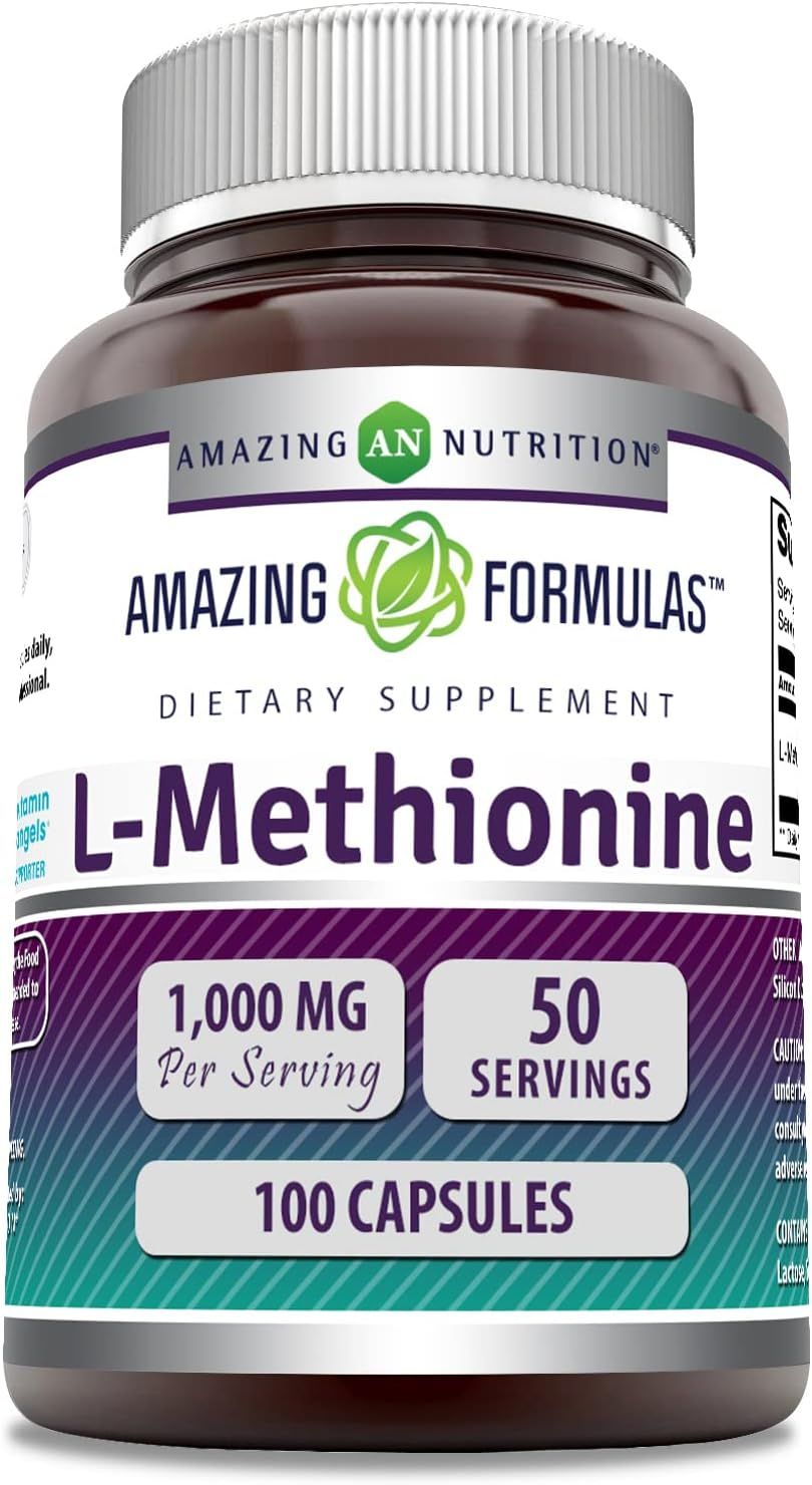 Amazing Formulas L-metionina 1000 mg 100 cápsulas Suplemento | Sin OMG | Sin gluten | Fabricado en Estados Unidos